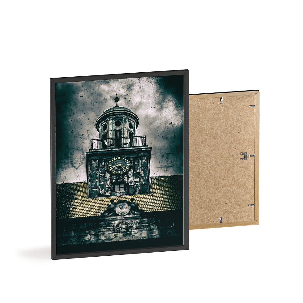Gothic Clock Tower Poster with Wooden Frame | Moody Architectural Wall Art